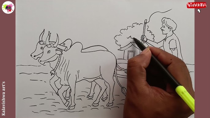 How To Draw Agricultural Tools Step By Step Plough Rake Sickle And Hoe Drawing Farm Tools Drawing Youtube